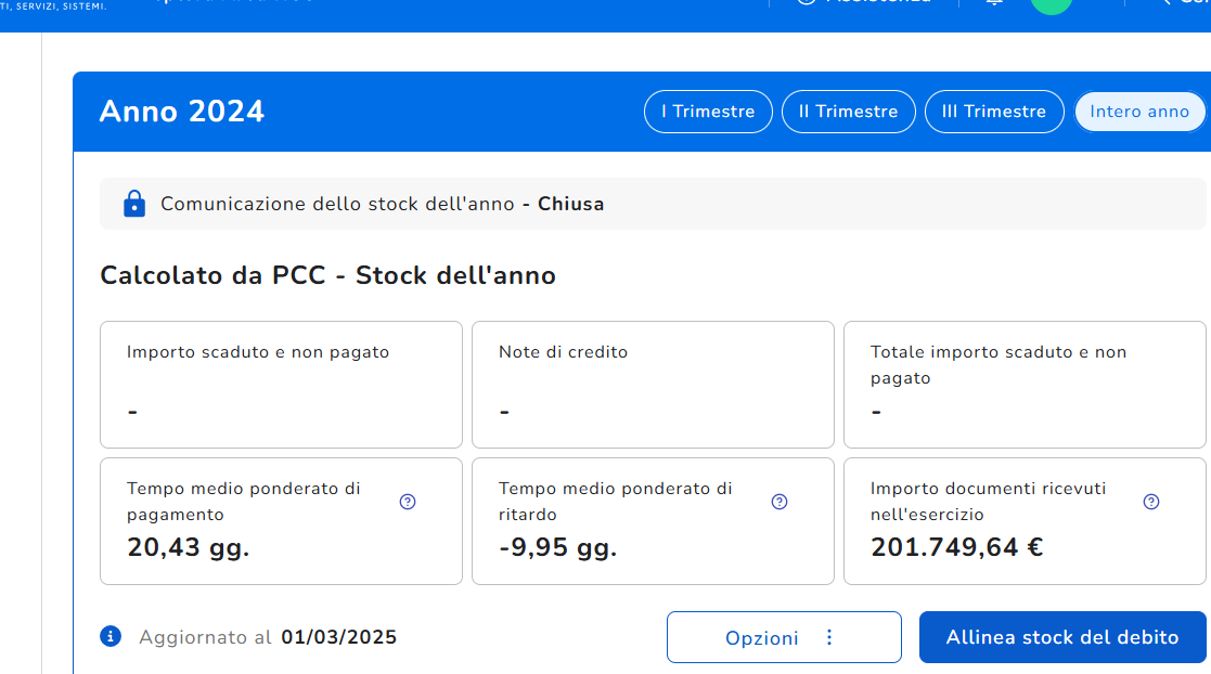 Stock del debito e imprese creditrici anno 2024 - 10/01/2025