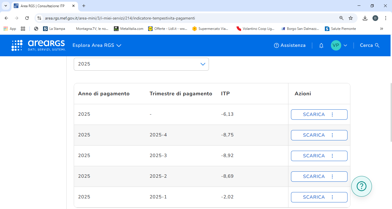 INDICATORE TEMPESTIVITA' PAGAMENTI 4° TRIMESTRE 2025 e ANNO 2025 - 08/01/2026