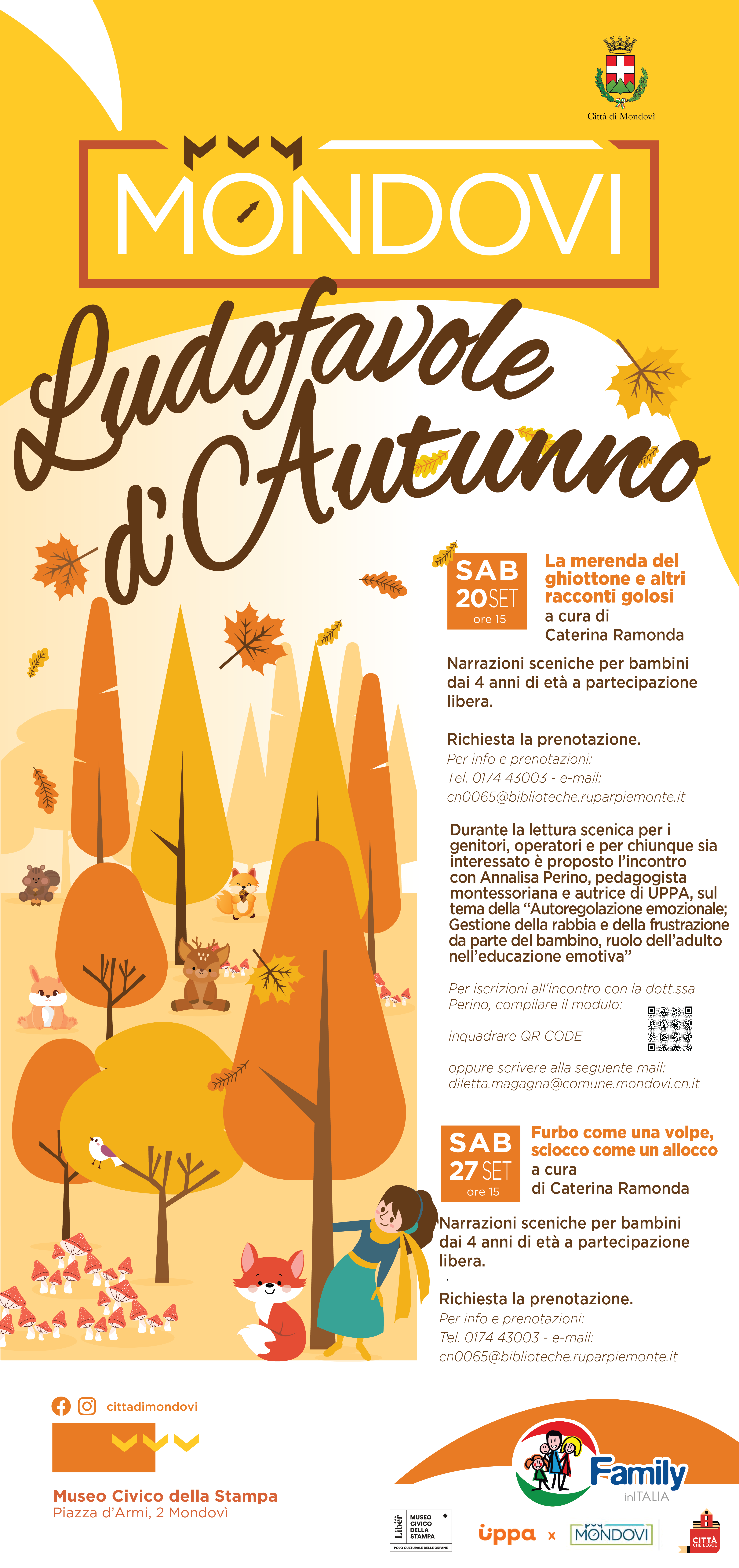 Nel pomeriggio di sabato 20 settembre alle ore 15.00, presso il Museo della Stampa, in occasione del primo appuntamento con le “Ludofavole d’autunno”, si terrà un incontro formativo con Annalisa Perino, pedagogista montessoriana e autrice di UPPA, sul tema della “Autoregolazione emozionale - Gestione della rabbia e della frustrazione da parte del bambino, ruolo dell’adulto nell’educazione emotiva”.