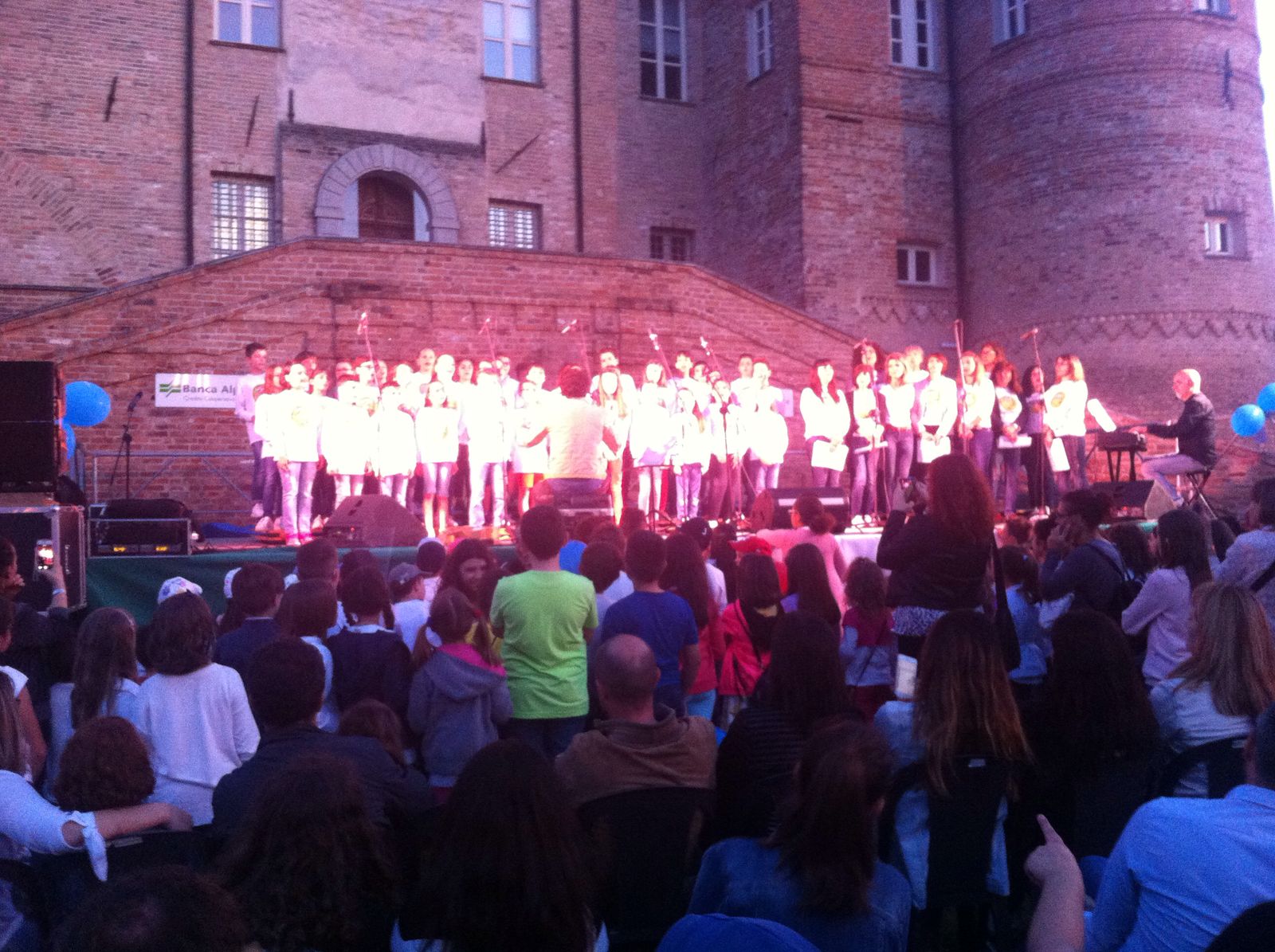 I nostri alunni delle Scuole Primarie alla manifastione "Notte Blu" di Carrù mentre cantano l'inno di Mameli.