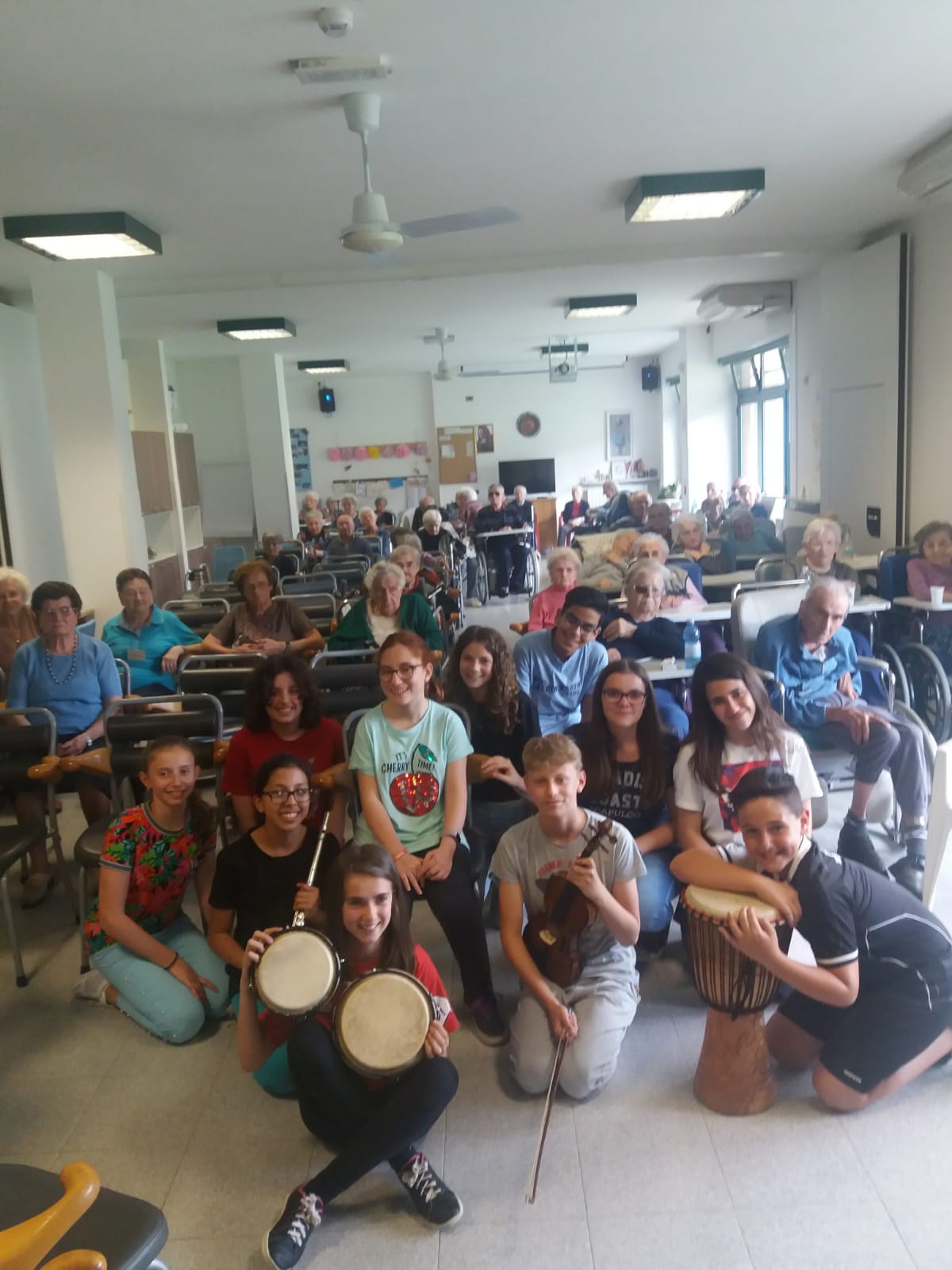 Il Coro della Scuola Secondaria alla Casa di Riposo: musica, allegria e un brindisi alla frutta.