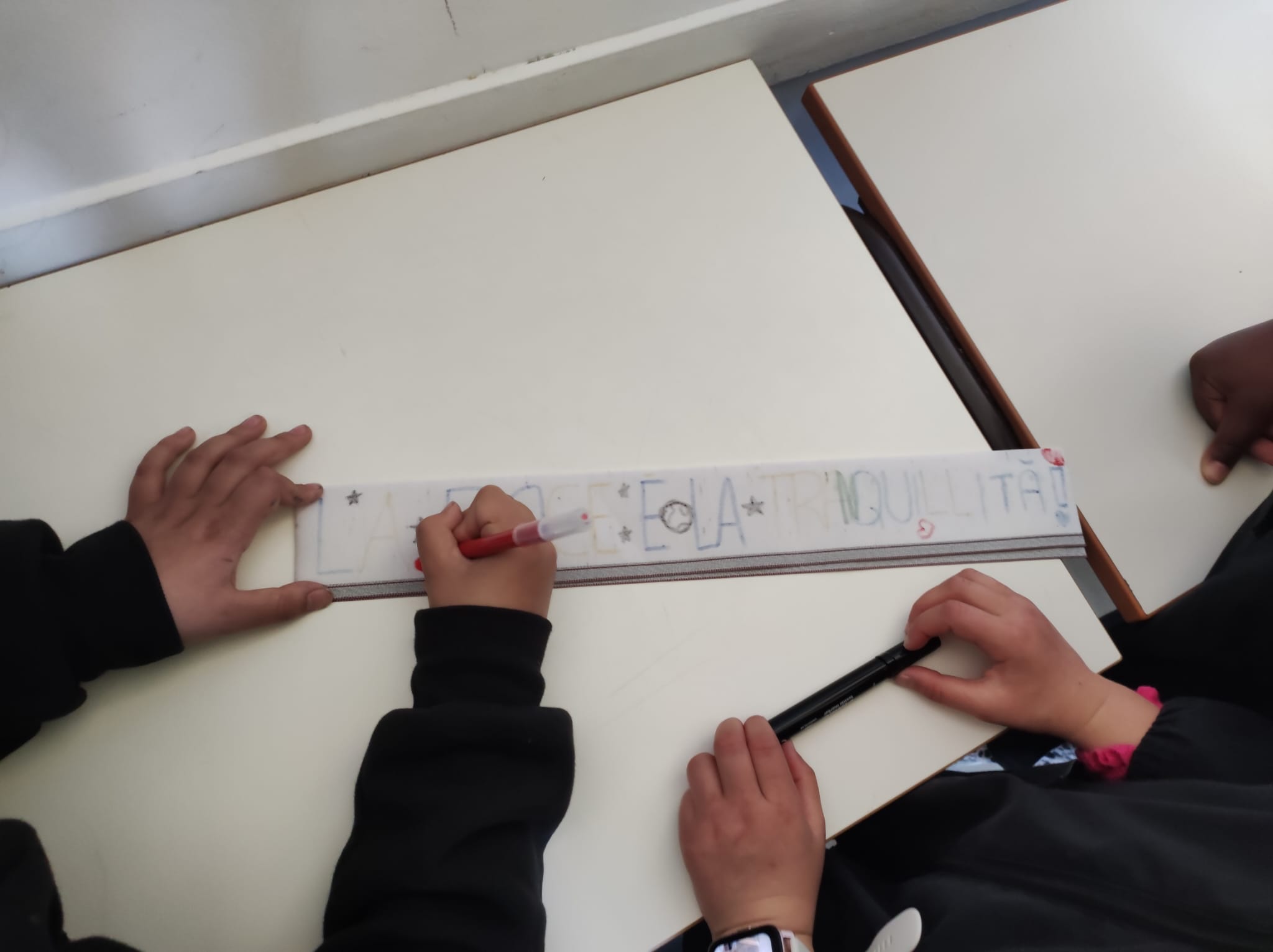 tema della pace. Al pomeriggio alcune classi della Secondaria incontreranno Nina Koevoets, esperta di pace invitata come ospite dal consorzio che verrà in visita nel