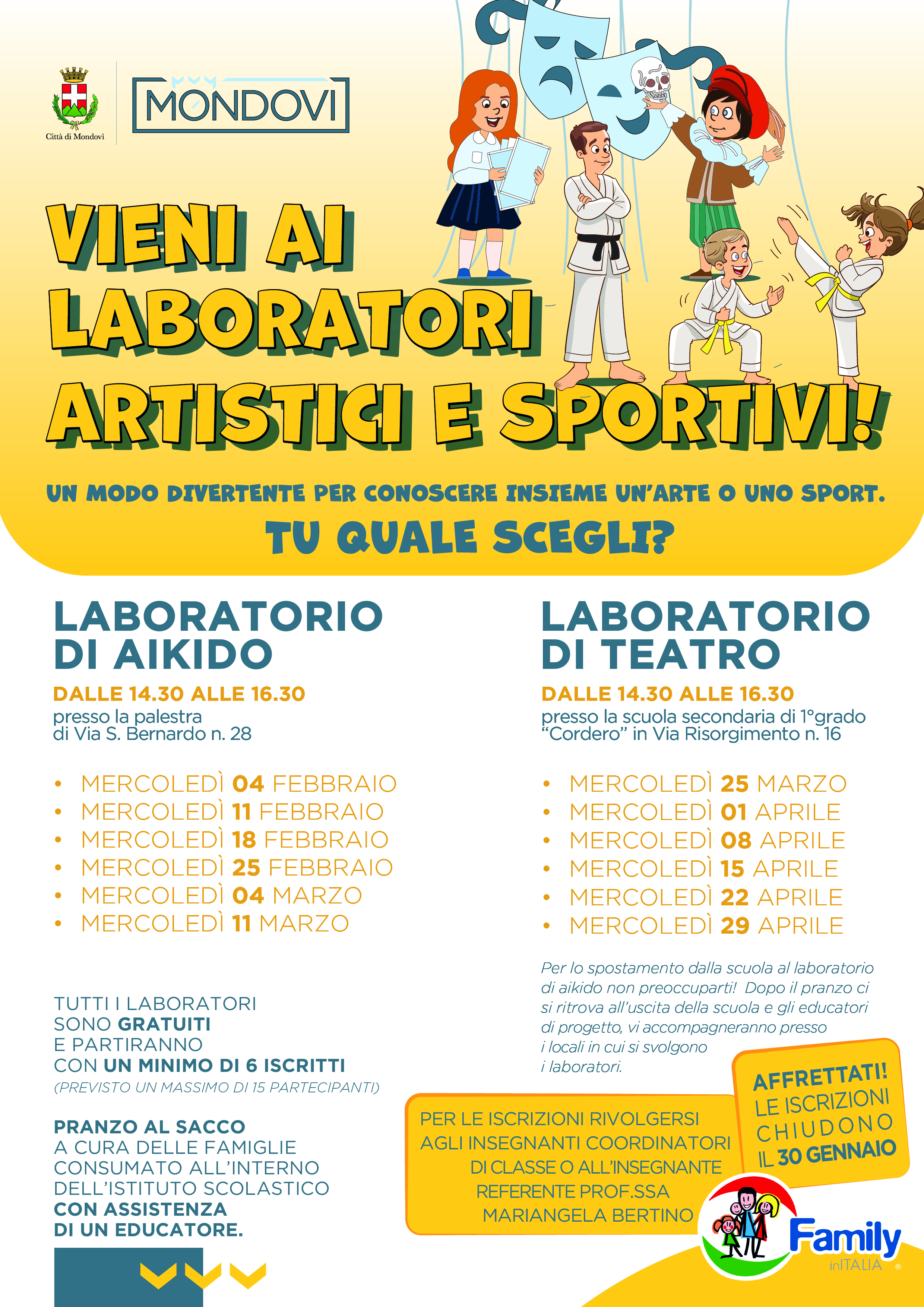 In qualità di comune certificato "Comune amico della famiglia", il Comune di Mondovì intende riproporre un ciclo di laboratori per i ragazzi delle medie, come quelli effettuati con grande successo lo scorso anno scolastico nell'ambito del progetto CUBE.